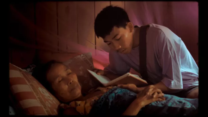 In Laos leest een jonge monnik elke dag een stuk uit het Dodenboek voor aan een stervende vrouw. De tekst moet haar helpen om de weg te vinden naar het hiernamaals. ‘Samsara’ volgt haar ziel op de zintuiglijke reis naar reïncarnatie in een volgend lichaam.